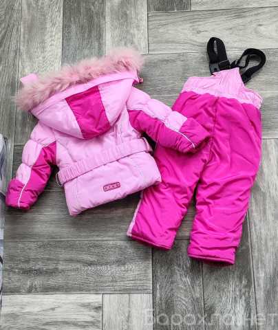 Костюм зимний для девочки Kiko размер 68 штаны с подтяжками и куртка с поясом и капюшоном тëплый, рукава можно подворачивать + тëплая жилетка.Костюм в отличном состоянии Варежки новые и шарфик к костюму в подарок.